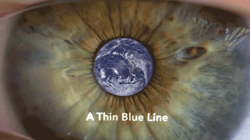 A Thin Blue Line is a short sci-fi-umentry focused on the Earth's atmosphere, environment and biodiversity. The mixed-media visuals are carried by the glossolaliac timbre of an alien guide that travels across time to observe Earth over 4 billion years arriving at present day. The film was created using a mix of in-camera practical effects such as stop-motion and timelapse photography blended with motion graphics and NASA stock footage.
